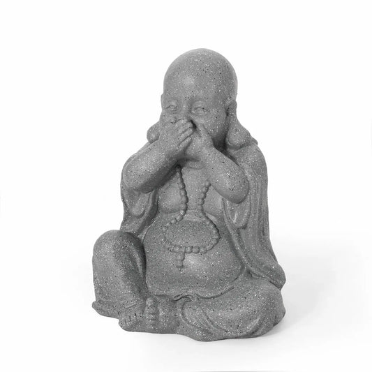 Conneaut outdoor Speak No Evil Monk Garden Statue, stone gray-