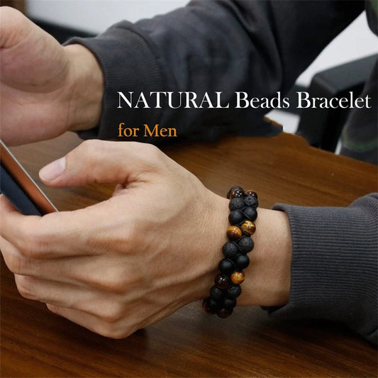 Triple Protection Bracelet for Men Women 8mm Tiger Eye Lava Rock Stone Handmade Bead Bracelet Healing Protection Bracelet