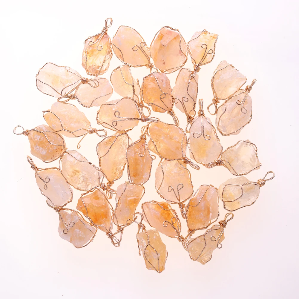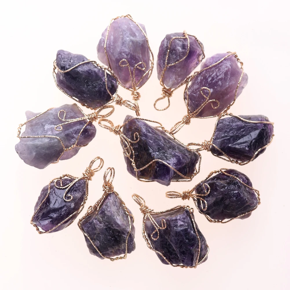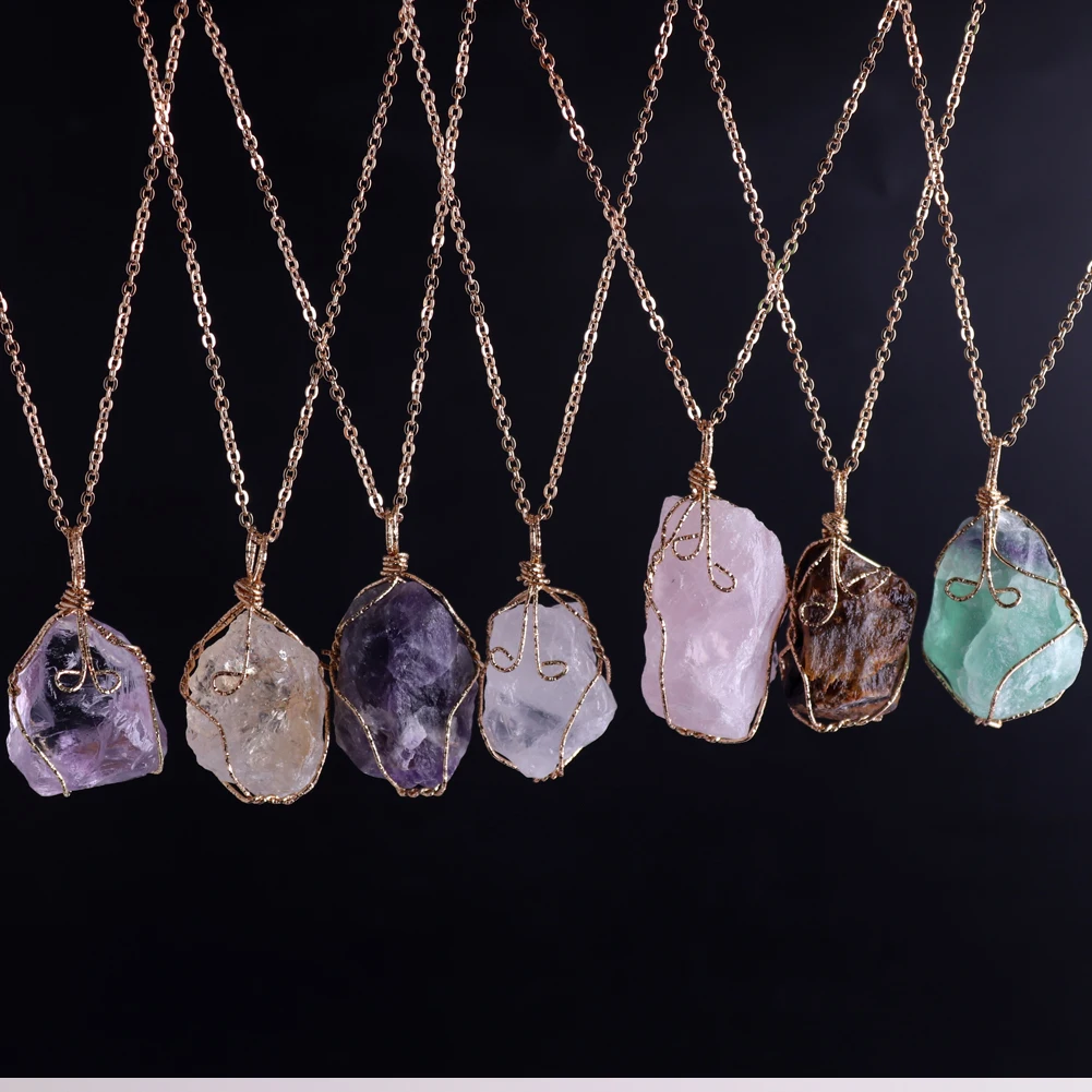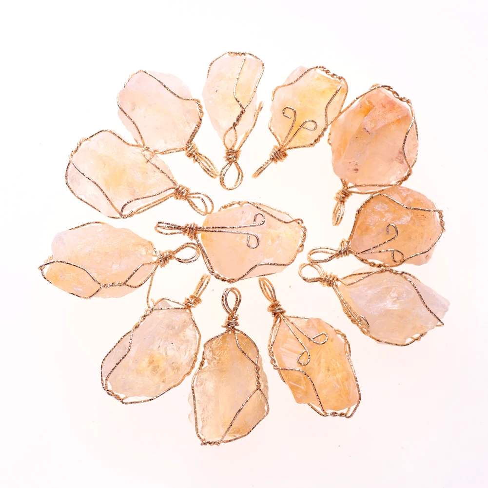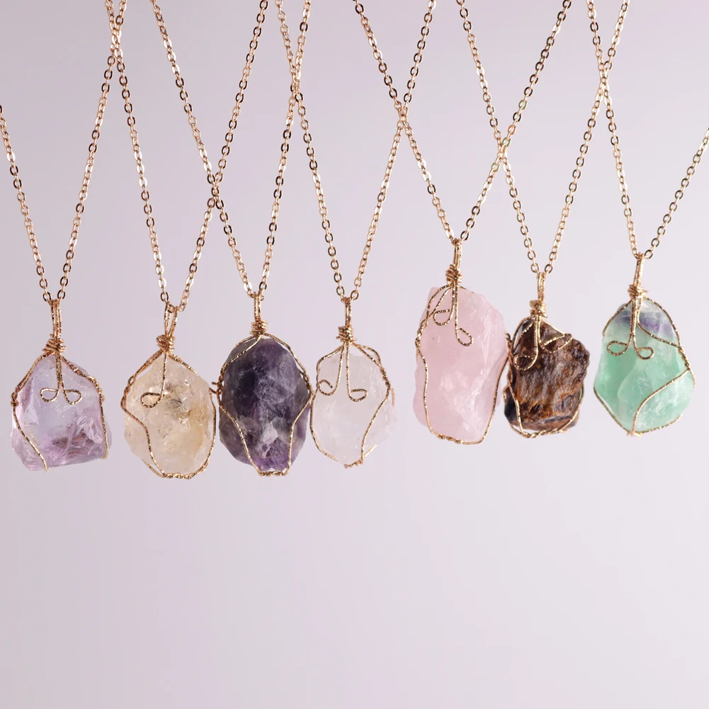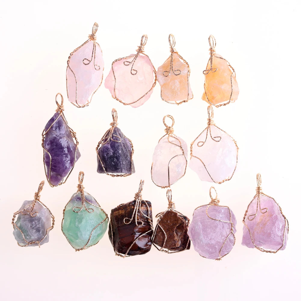 12pcs New Natural Raw Stone Wire Wrap Necklace Pendant Healing Energy Jewelry Pendulum Bulk Wholesale Items For Small Business