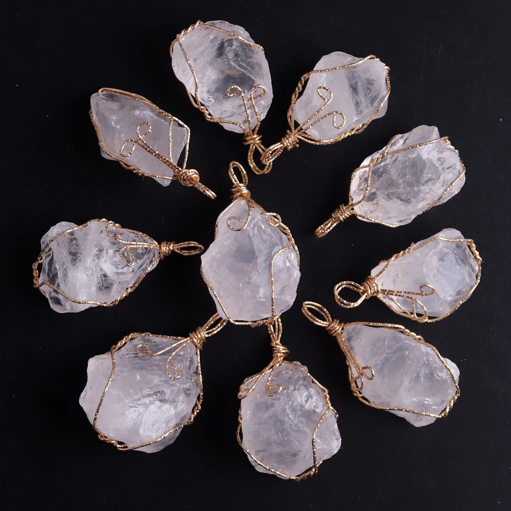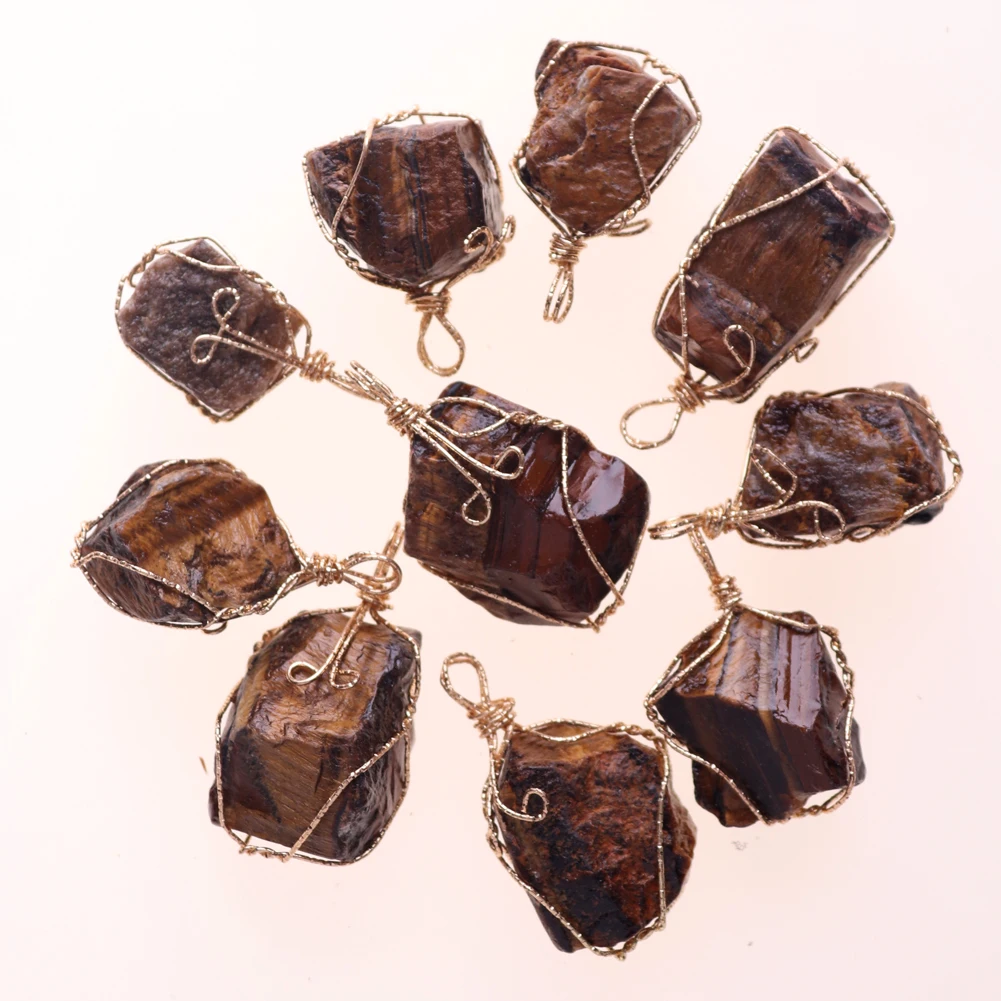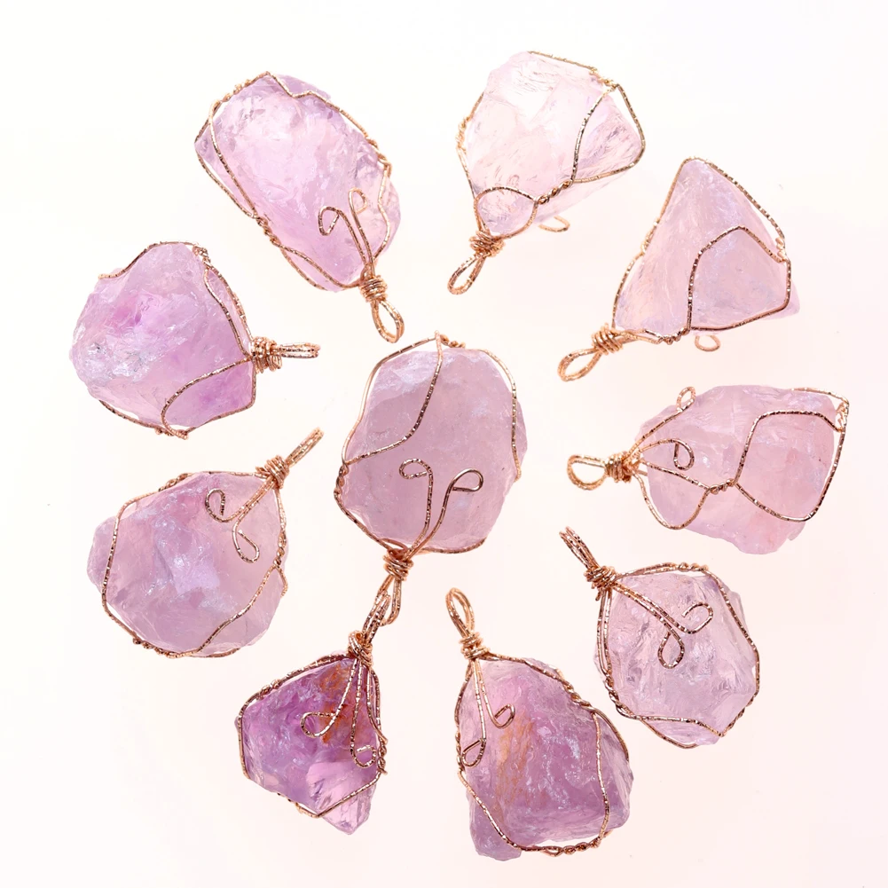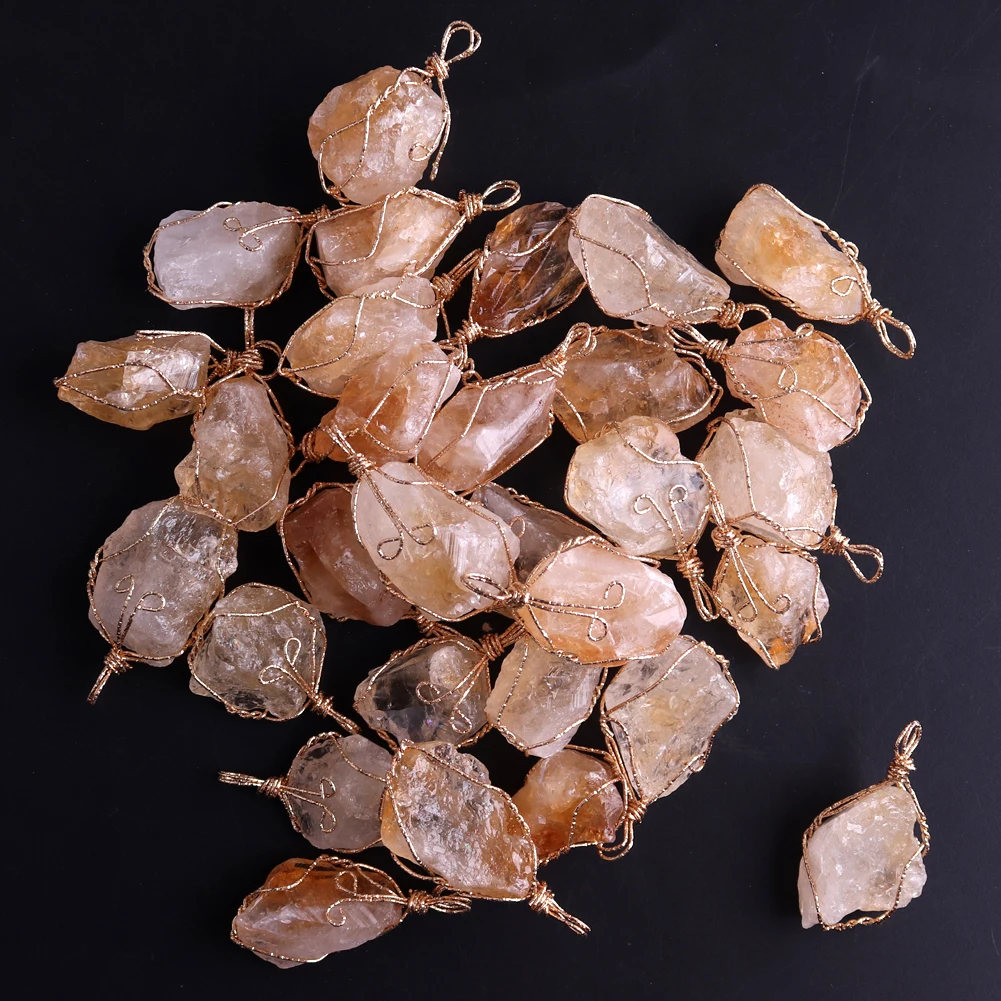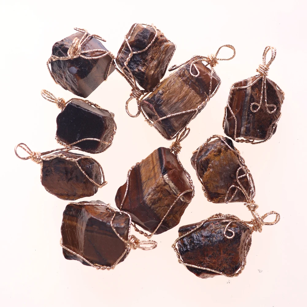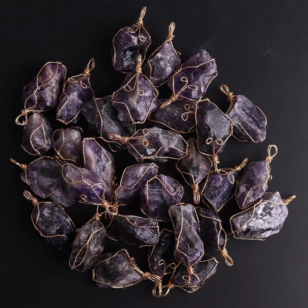 12pcs New Natural Raw Stone Wire Wrap Necklace Pendant Healing Energy Jewelry Pendulum Bulk Wholesale Items For Small Business