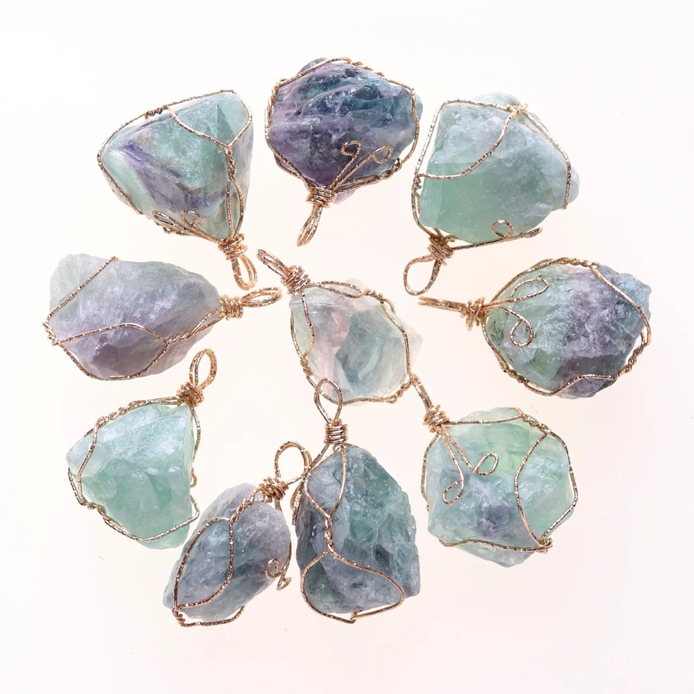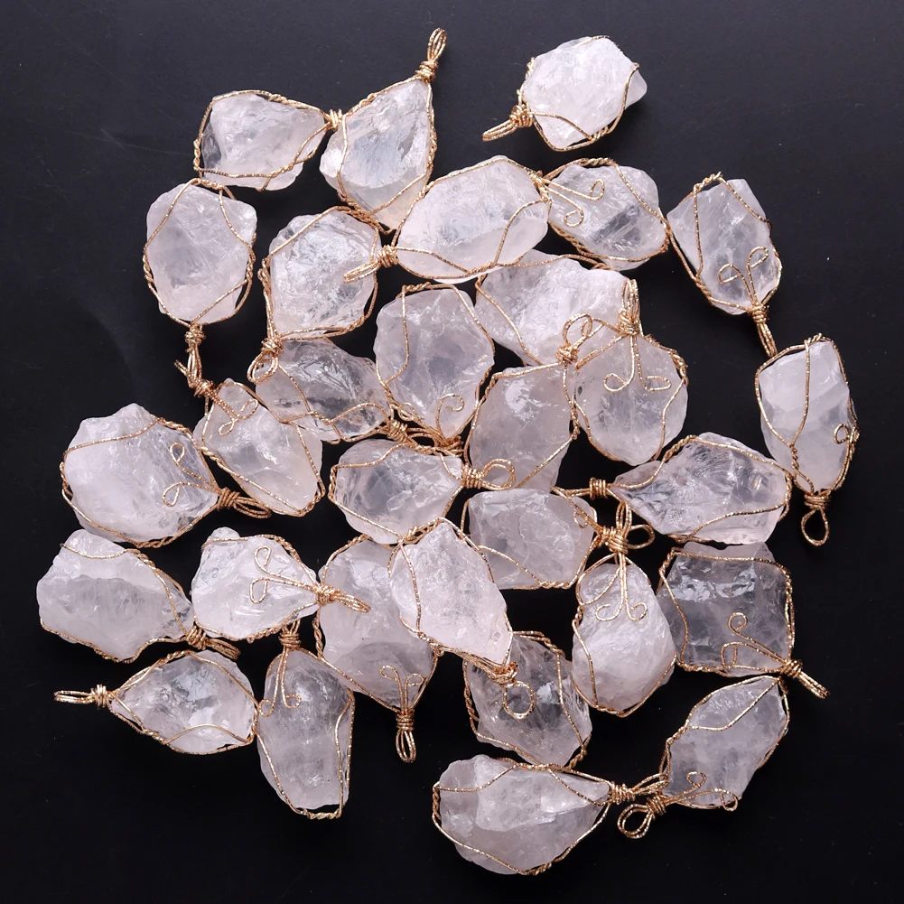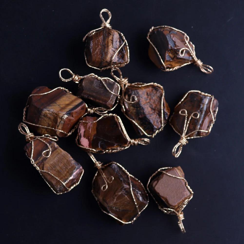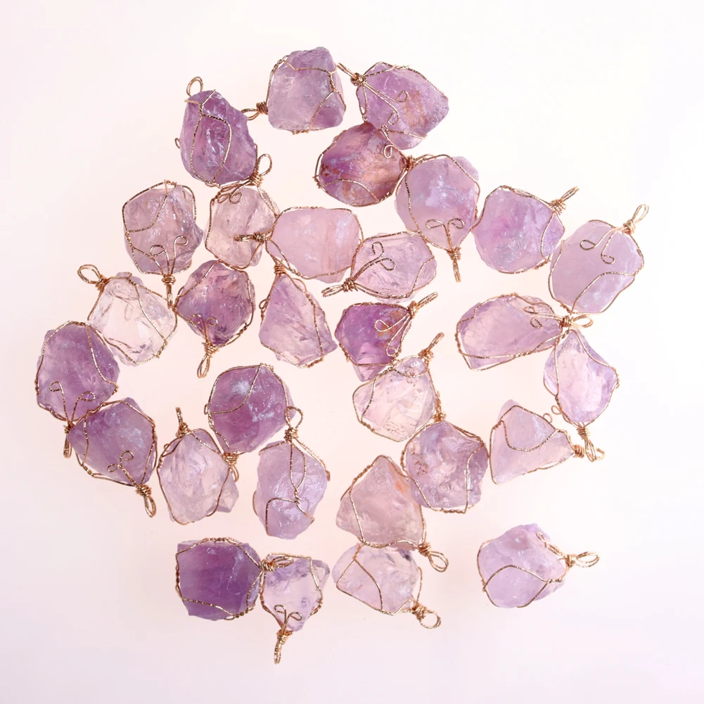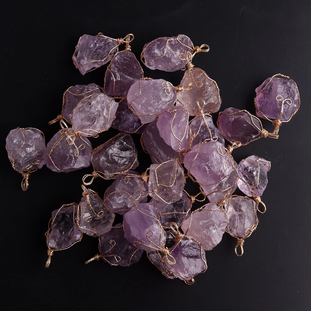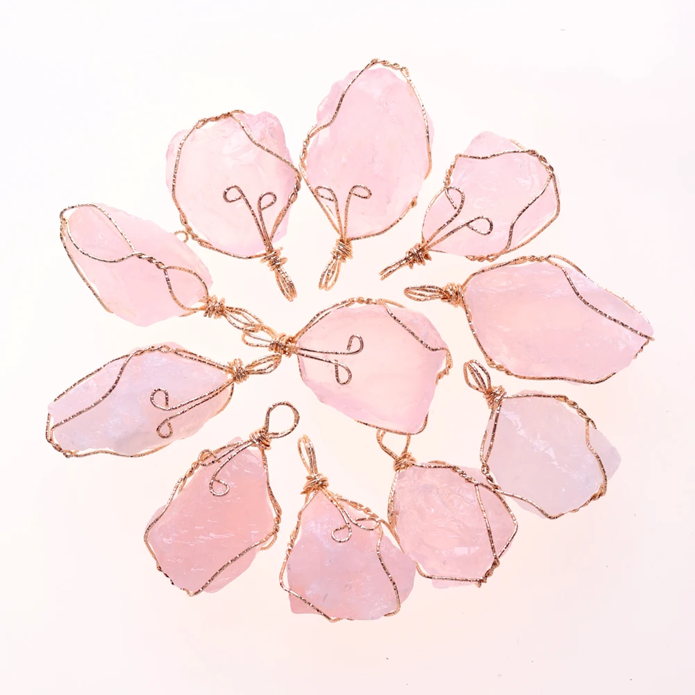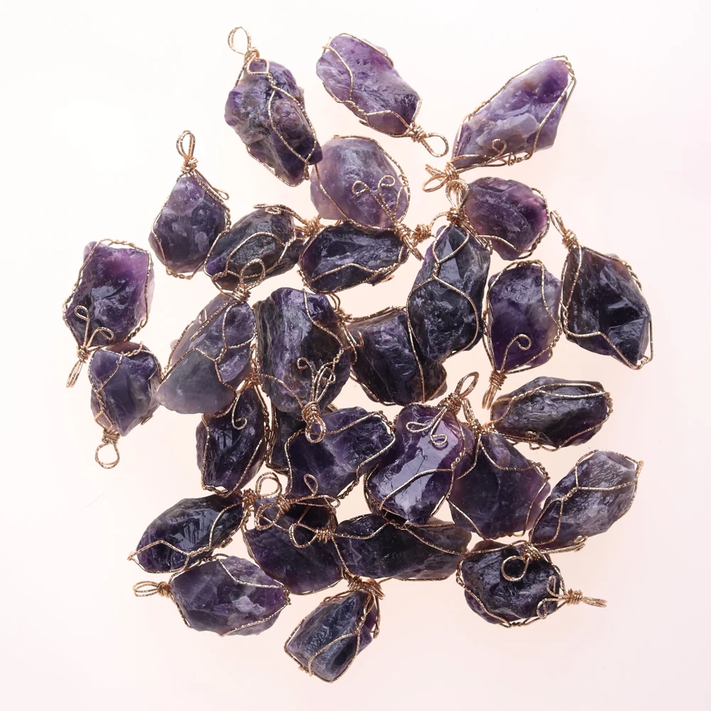 12pcs New Natural Raw Stone Wire Wrap Necklace Pendant Healing Energy Jewelry Pendulum Bulk Wholesale Items For Small Business