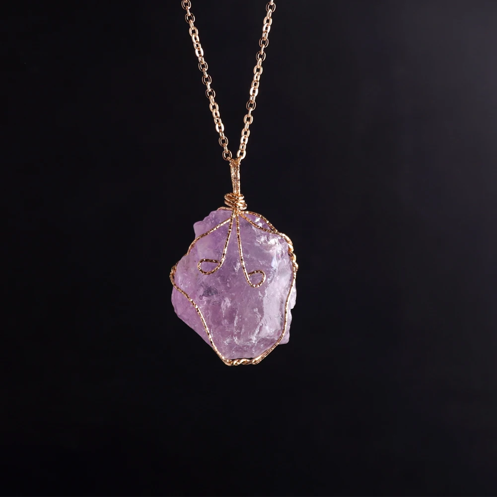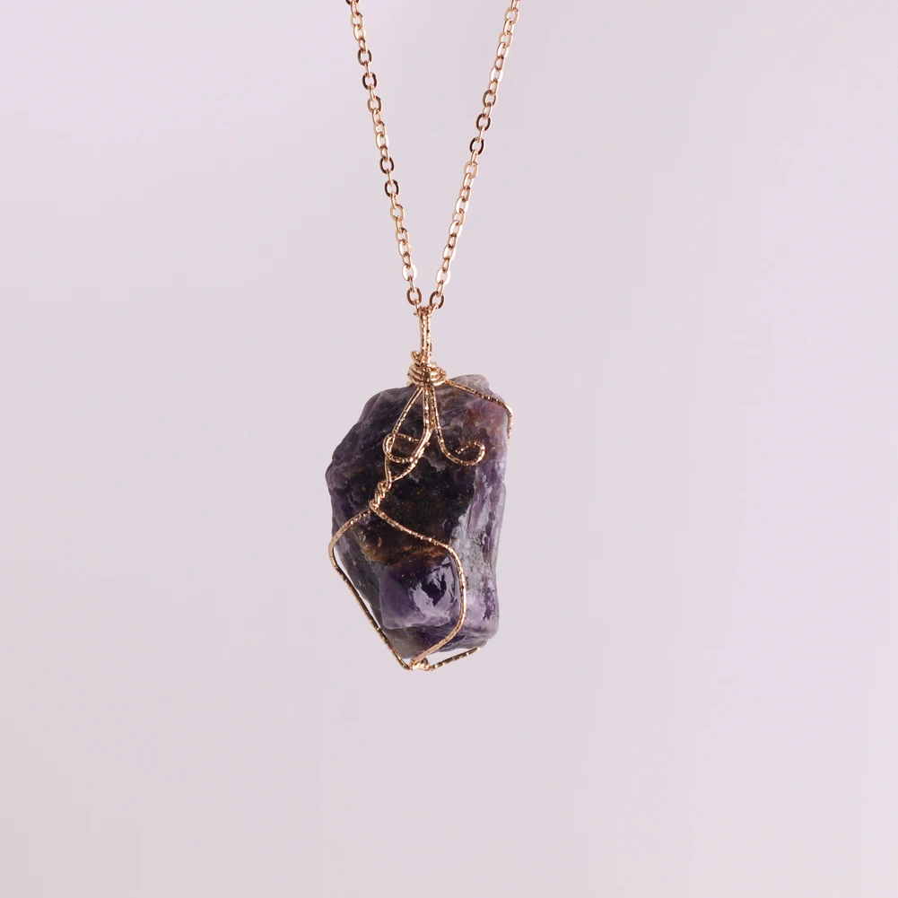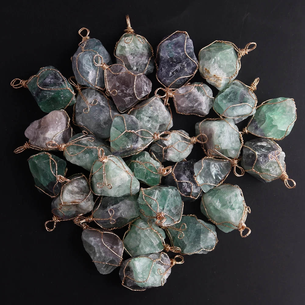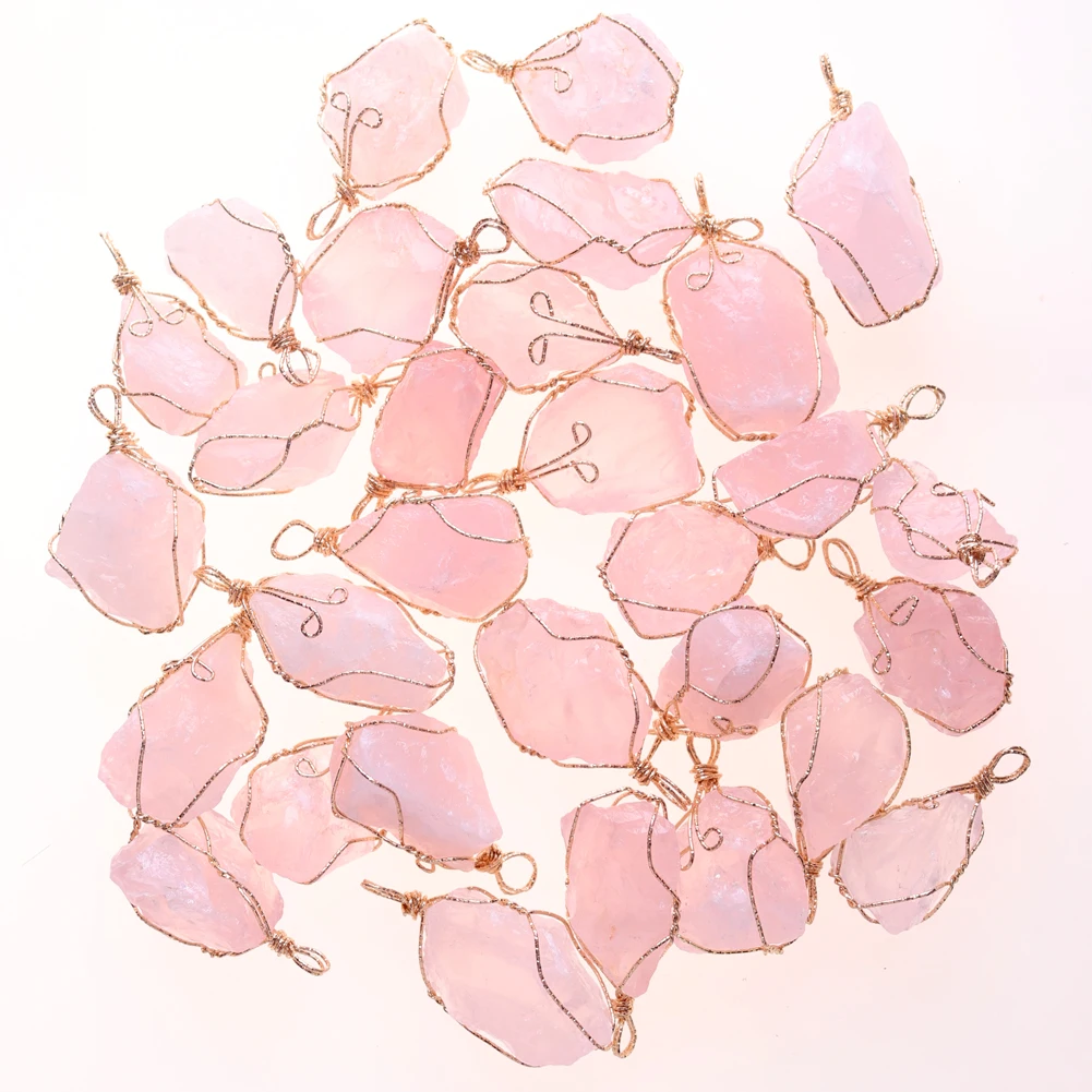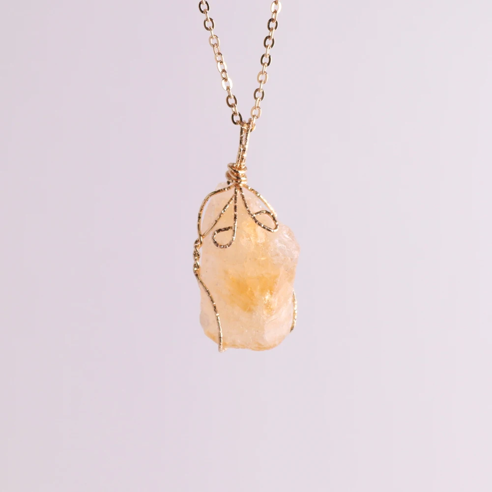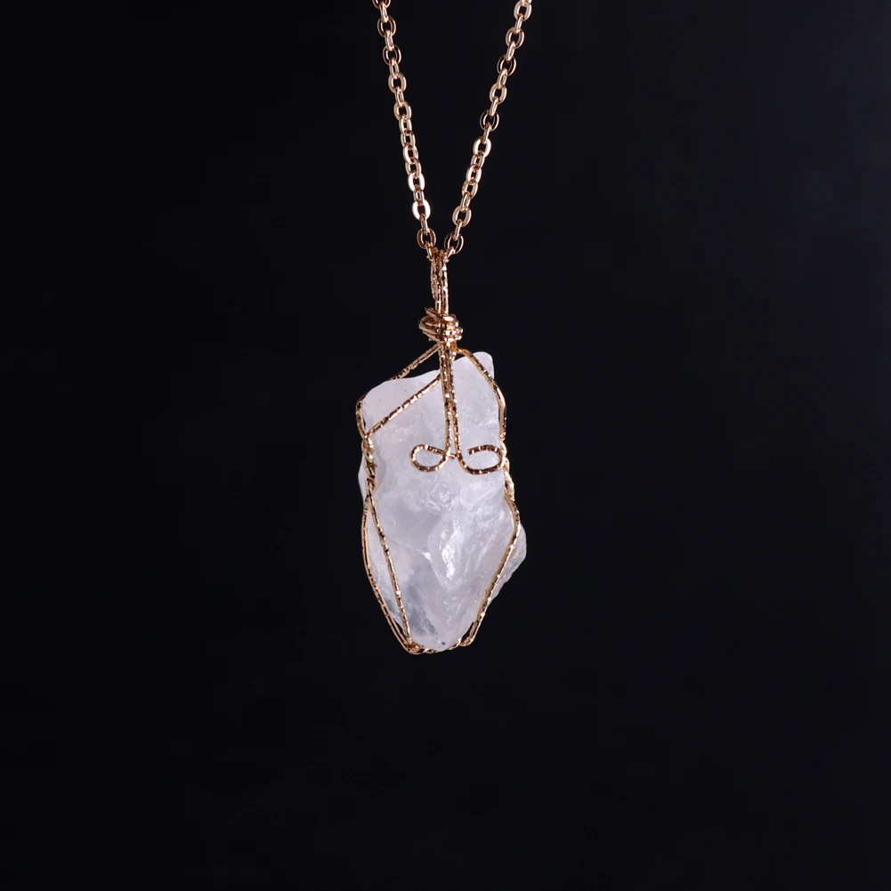 12pcs New Natural Raw Stone Wire Wrap Necklace Pendant Healing Energy Jewelry Pendulum Bulk Wholesale Items For Small Business