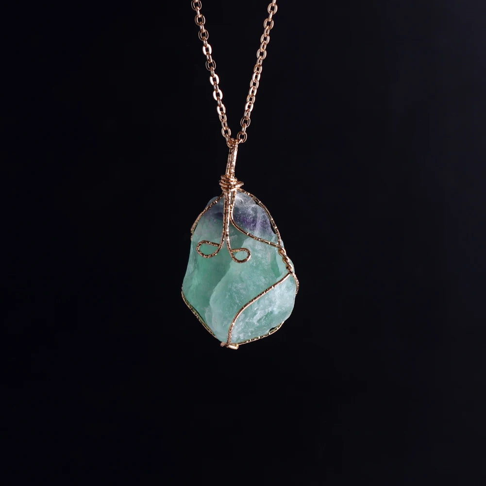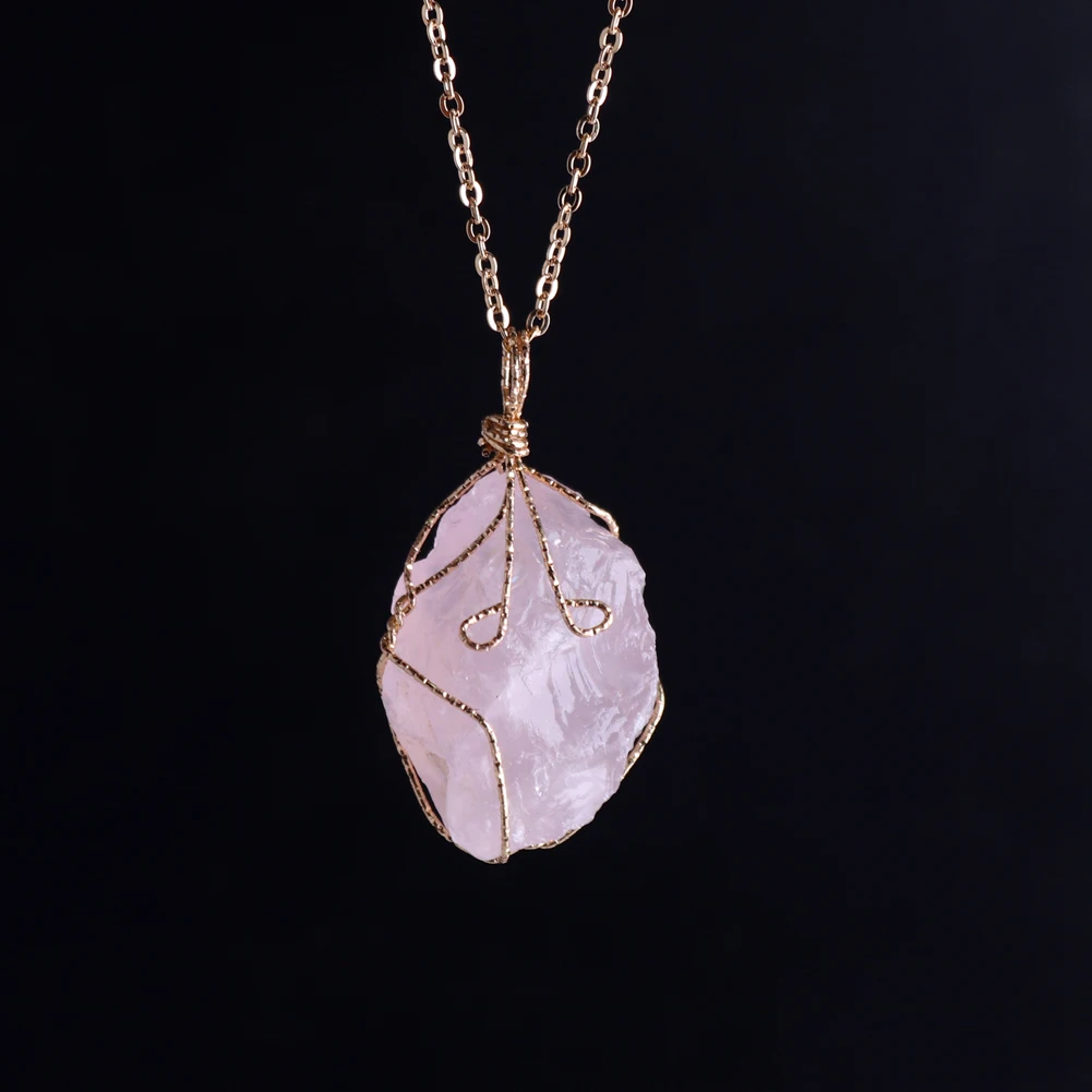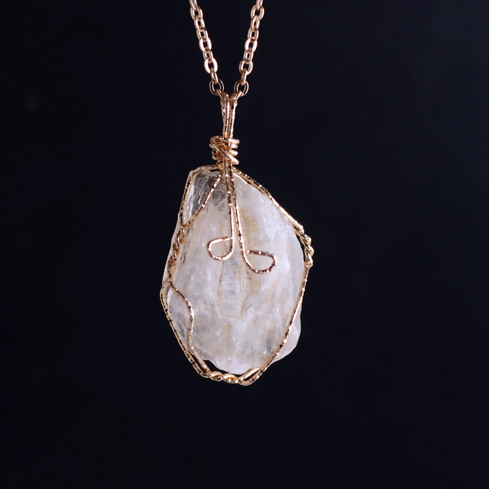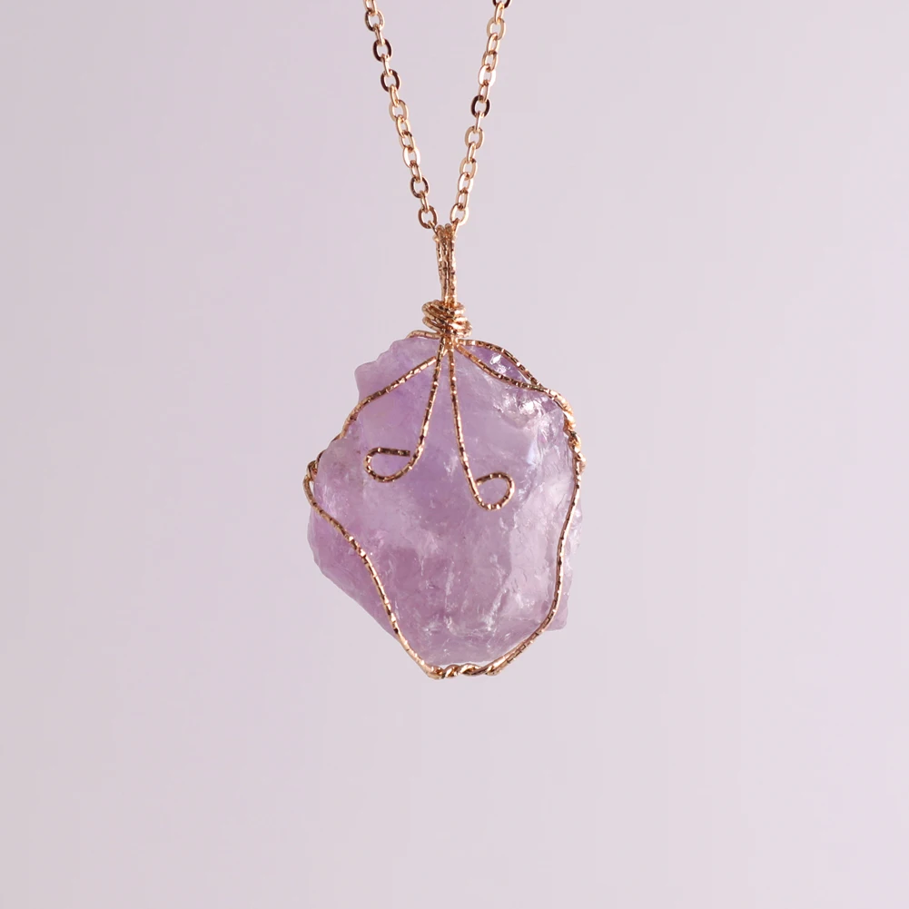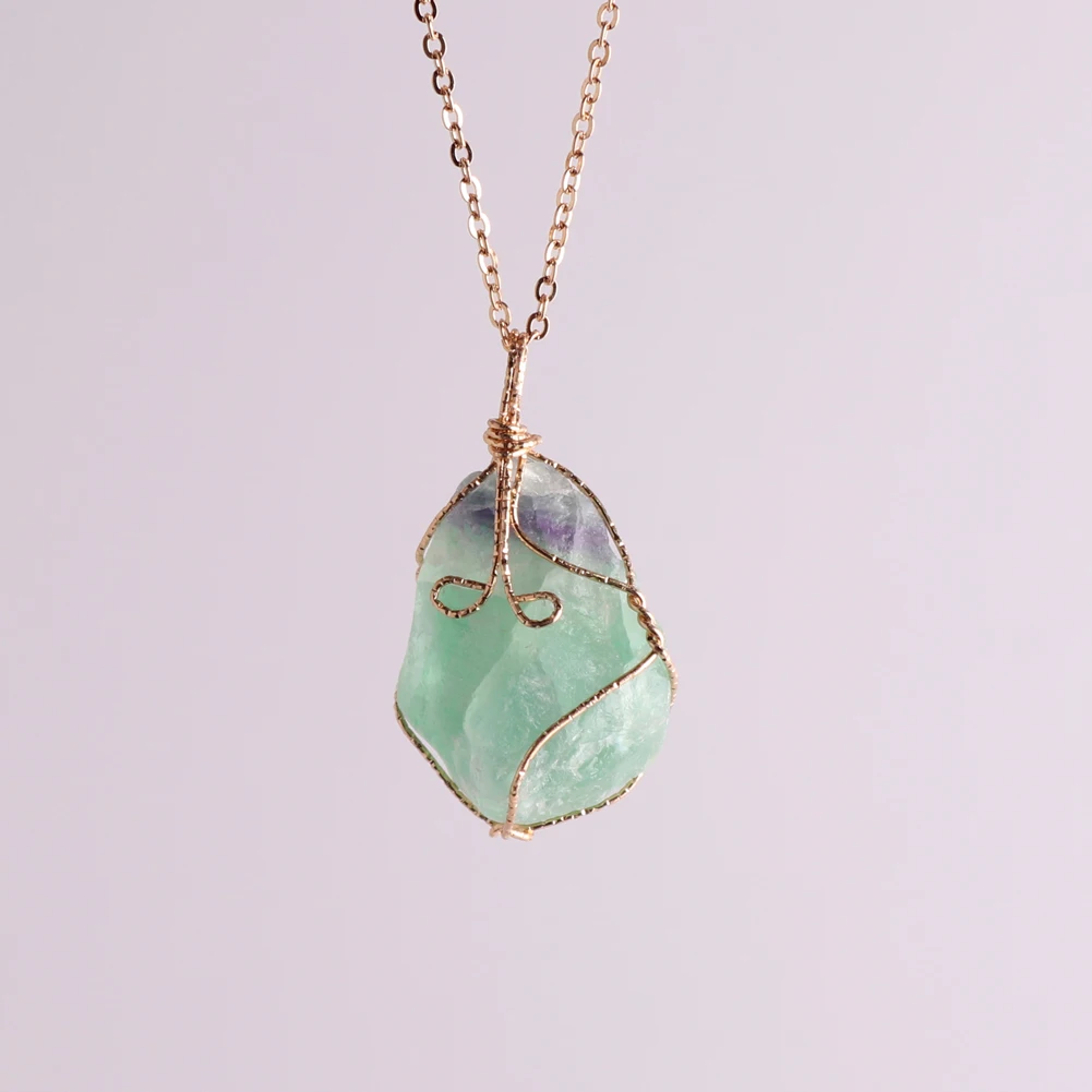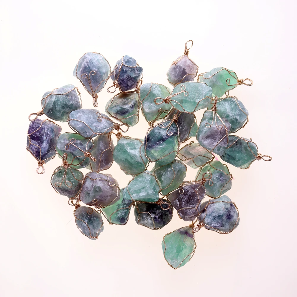 12pcs New Natural Raw Stone Wire Wrap Necklace Pendant Healing Energy Jewelry Pendulum Bulk Wholesale Items For Small Business