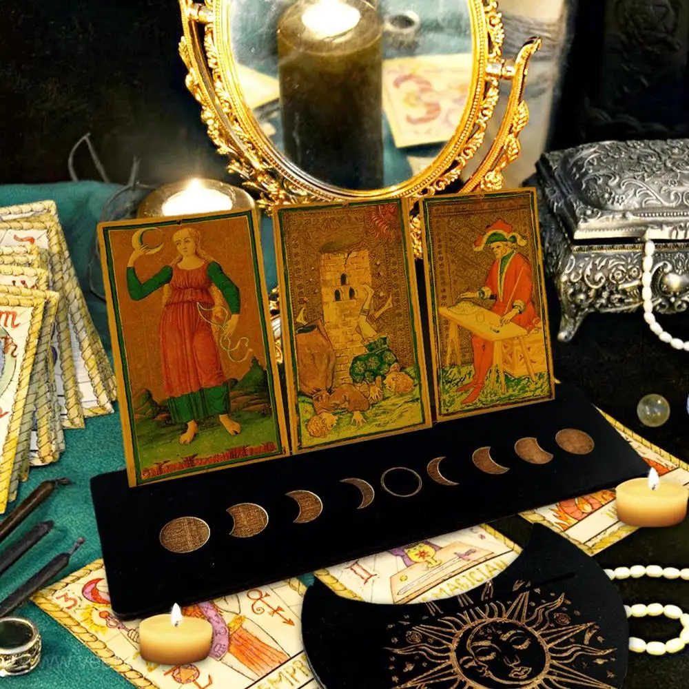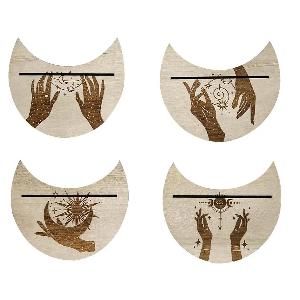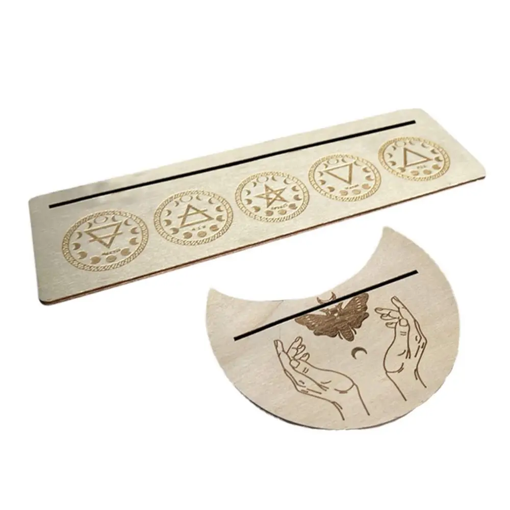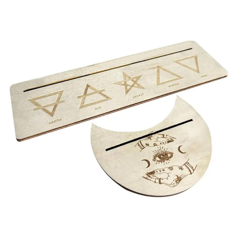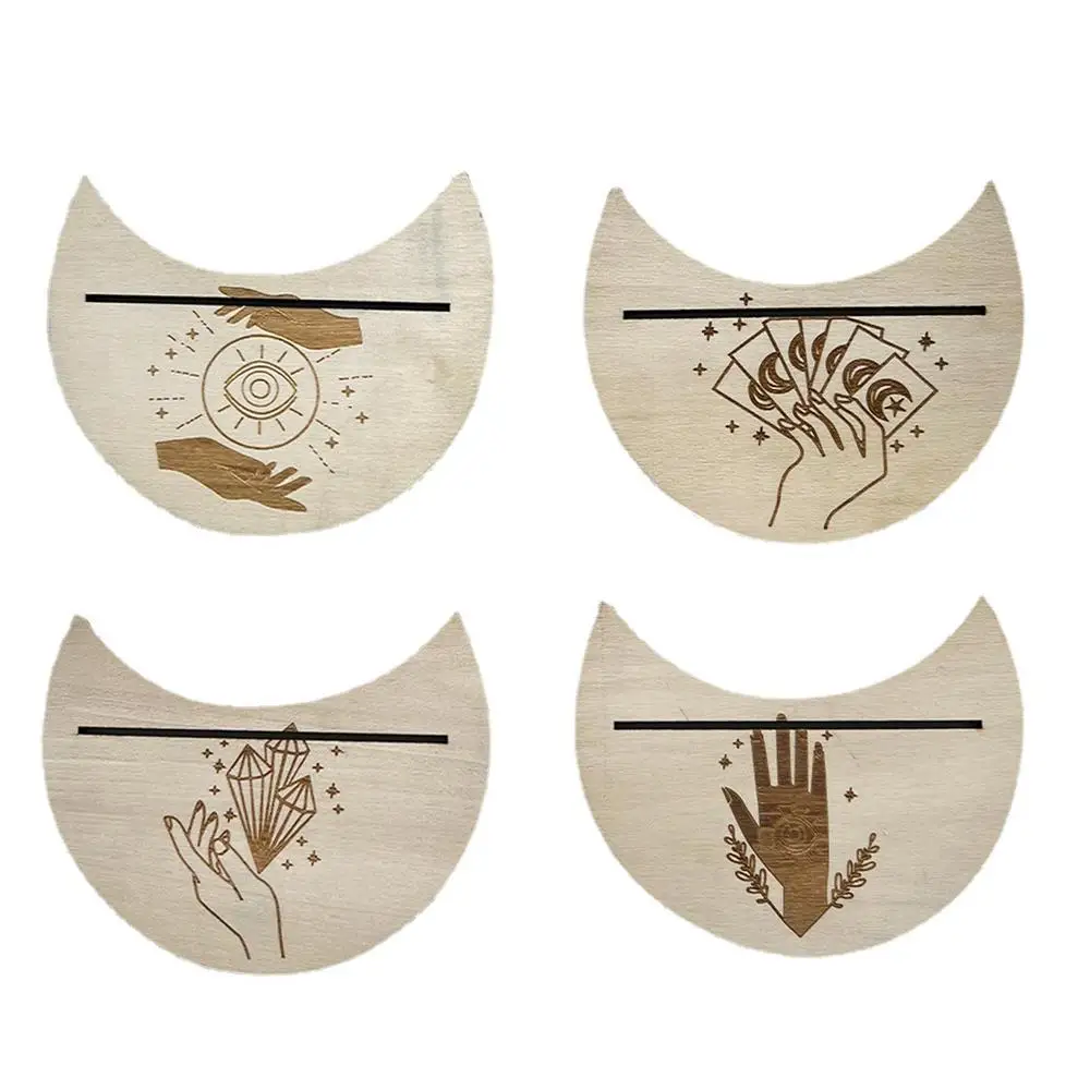 2/4pcs Wooden Card Stand For Tarot Moon Shape Rectangle Card Altar Stand Wood Display For Witch Divination Tools Decor