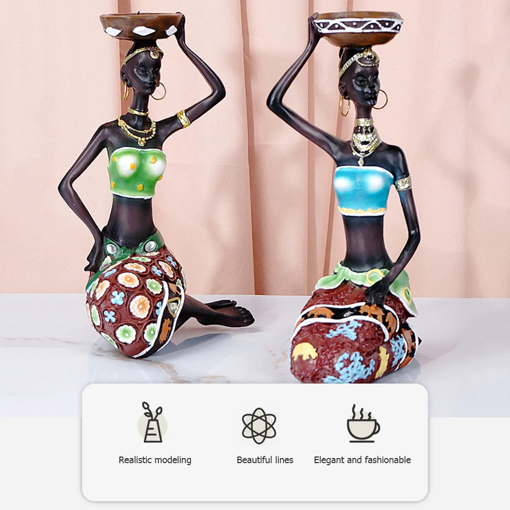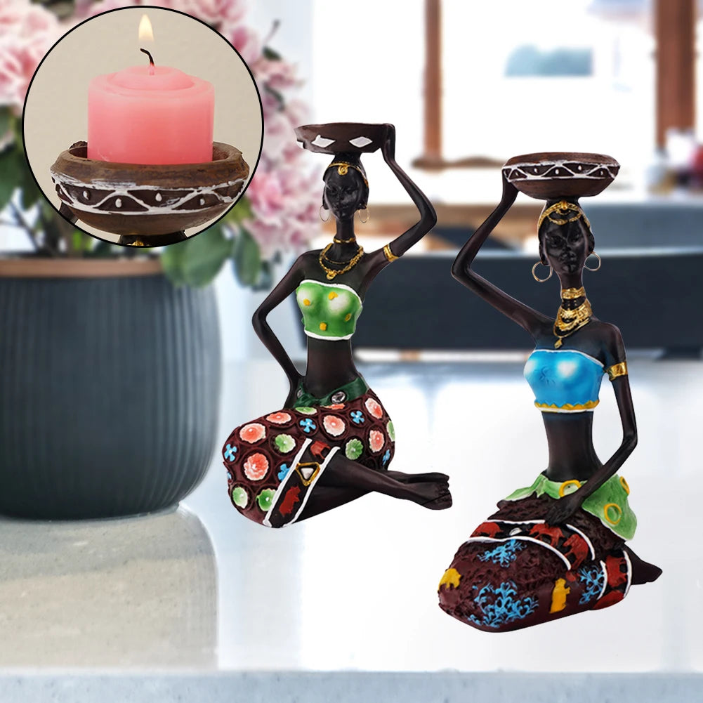 African Women Resin Candle Stand Exquisite Creative Chic for Anniversary (1 Set)