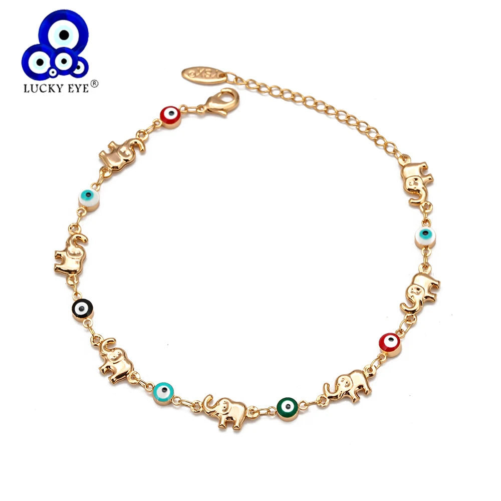 Lucky Eye Elephant Multi Color Evil Eye Charm Bracelet Copper Gold Color Chain Bracelet Adjustable for Women Girls Jewelry BD360