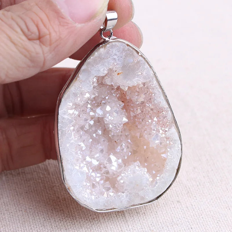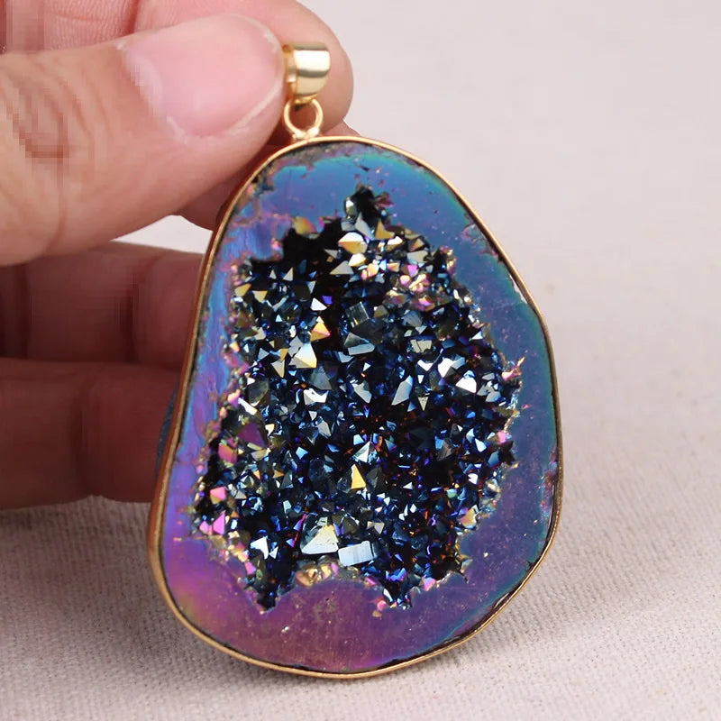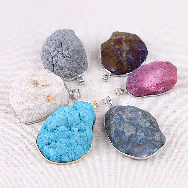 Retro Big Size Half Mineral Ore Agates Quartz Pendants