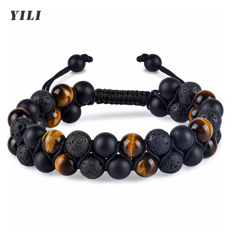 Triple Protection Bracelet for Men Women 8mm Tiger Eye Lava Rock Stone Handmade Bead Bracelet Healing Protection Bracelet