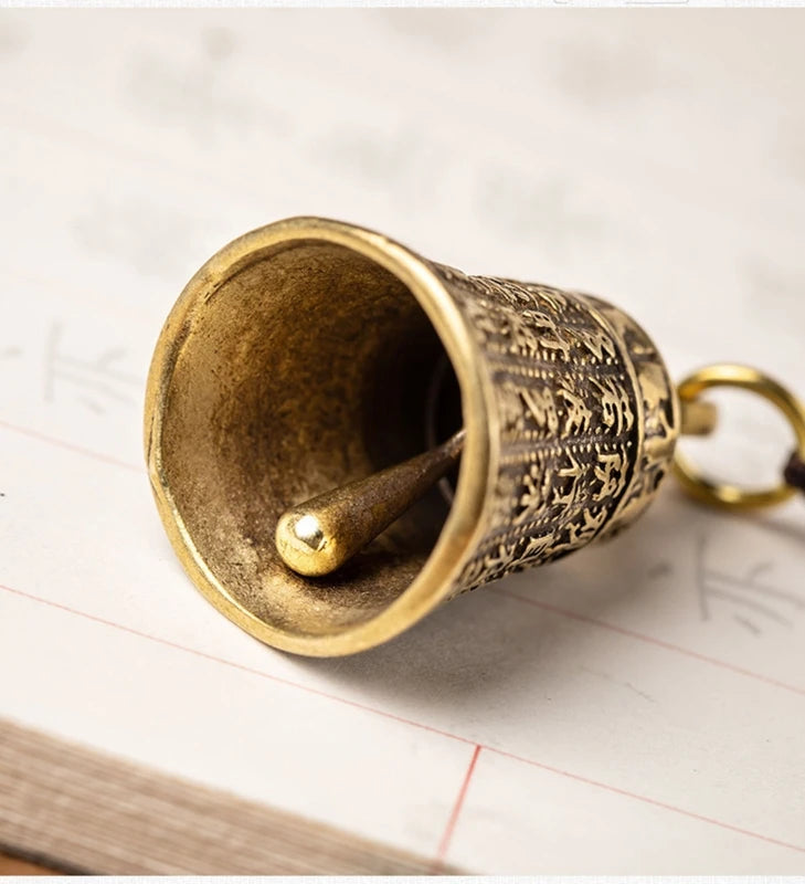Vintage Brass Tibetan Buddhism Six-word Mantra Bell Keychains Lanyard Pendants Handmade Rope Car Key Chain Rings Hanging Jewelry
